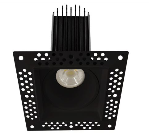 These trimless 2" downlights by Lotus LED Lights are an excellent choice to provide your general residential or commercial application with long lasting, energy efficient LED illumination. They are IC-rated and only 5" deep, allowing for installation in ceiling where space is limited and without the need for a recessed housing. Their mudring trims allow for easy of application of drywall spackle over them after installation, providing the seamless 'trimless' appearance. Being CCT-selectable, they allow for the installer to easily select between 5 different white light color temperatures using a switch on the driver to best suit the application or end-users preference. The high color rendering (90+ CRI) produces rich and vibrant colors in the area of illumination.The LED-2-S15W-L5CCTBK-T-SQ is a 2" square, 15 watt trimless LED downlight in a black finish that provides up to 985 lumens of CCT-selectable white light in a 38º beam angle and the following features: