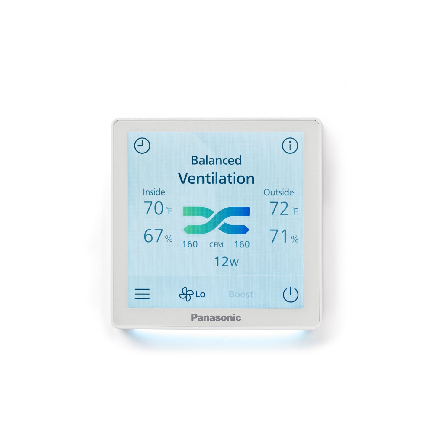 The all new touchscreen LED wall control (sold separately) allows for total control of the BalancedHome ERV unit. The wall control provides the user access to multiple ventilation control settings along with updates for real-time air flow and temperature monitoring